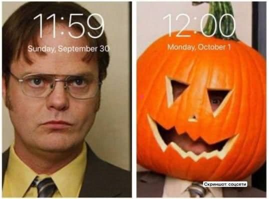Пожалуй, самые популярные октябрьские мемы посвящены главному празднику месяца в англоязычных странах — Хеллоуину. Некоторые пользователи публиковали кадры из сериала «Офис», шутя о том, что многие начинают готовиться отмечать уже с наступлением 1 октября.