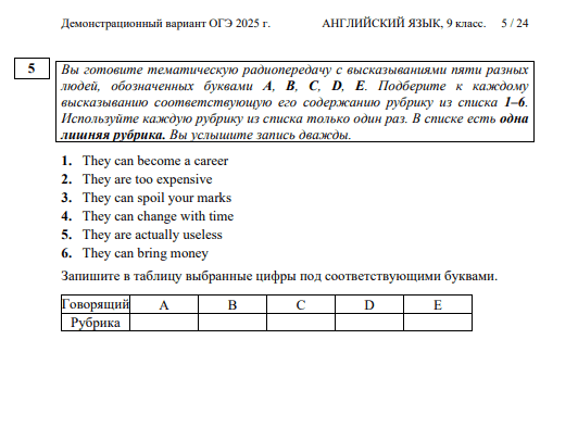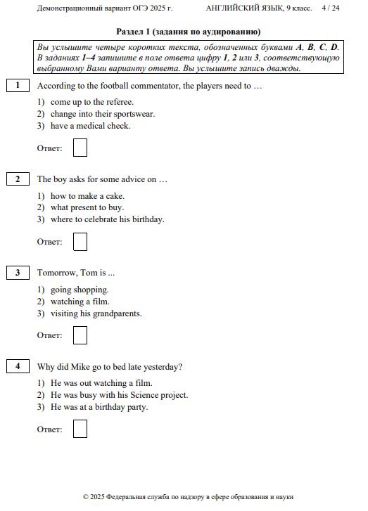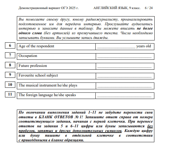 Раздел «Аудирование» включает в себя 11 заданий. Каждая запись звучит дважды, поэтому можно не переживать, если что-то не удалось понять при первом прослушивании.