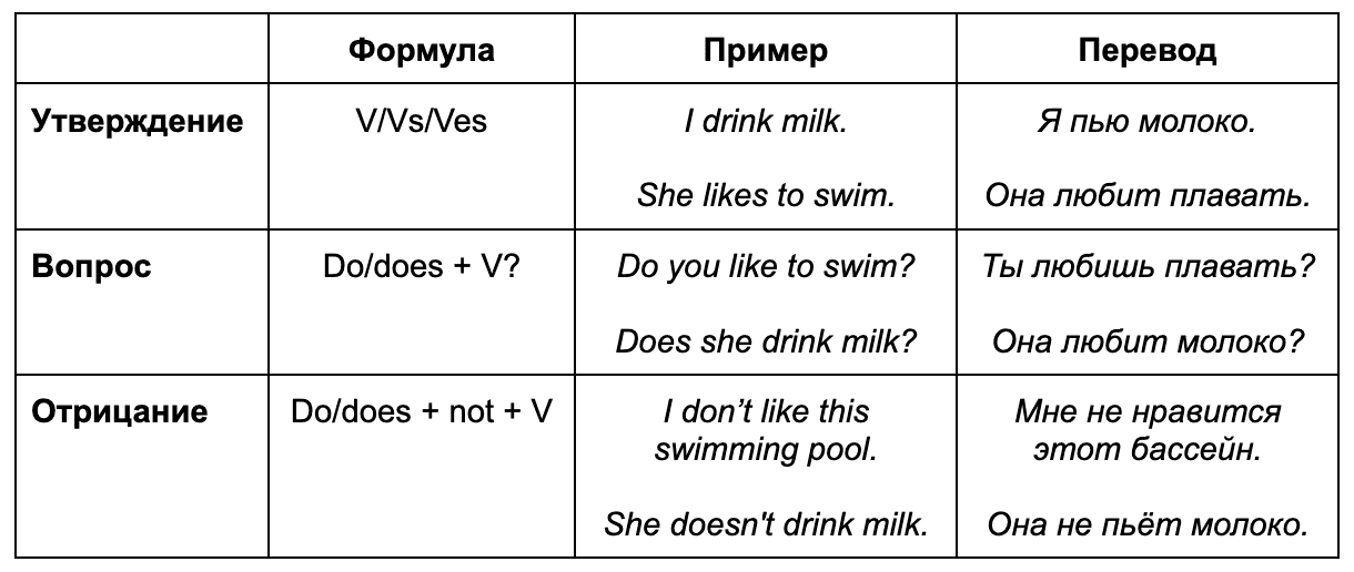Простое настоящее время имеет достаточно ясную формулу:
